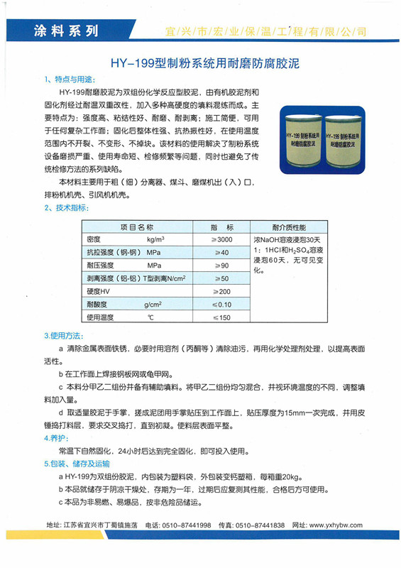 HY-199型制粉系統用耐磨防腐膠泥